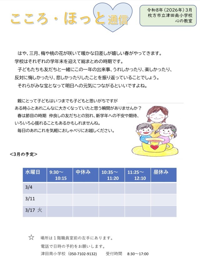 2/26(木)こころ・ほっと通信(3月予約分)