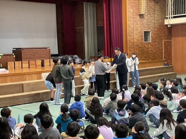 もう一つは先日のタイピング選手権の表彰です。校長先生から個人戦、団体戦の上位の人たちに賞状が授与されました。表彰されなかった子ども達もタイピングスキルが上がったと思います。来年度もがんばってくださいね!