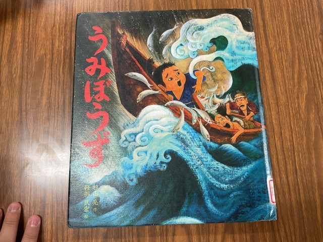 まずは絵本の読み聞かせです。今日の2時間目2年生の授業の様子です。司書の先生が『うみぼうず』の絵本を読み聞かせをしていました。