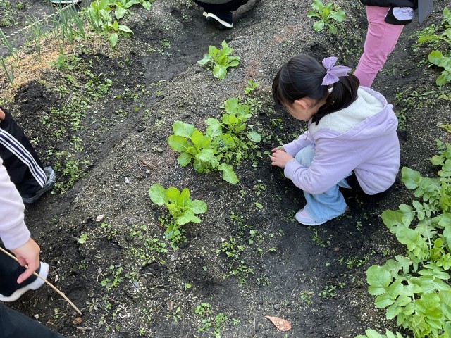 3/9(月)1年生 生活科で野菜のお世話 公開日 2026/03/09 更新日 2026/03/09 1年生 体育倉庫裏の学年の畑のお手入れをしてしました。ネギやダイコンなどの間に生えた雑草を一生懸命抜くことができました。「葉っぱの形をよく見て、違ったてたら雑草だよ。」と言うと「なるほど!」とたくさん抜いてくれていました。いろいろなお野菜がたくさん収穫できるといいですね。 +3 いいね(0)