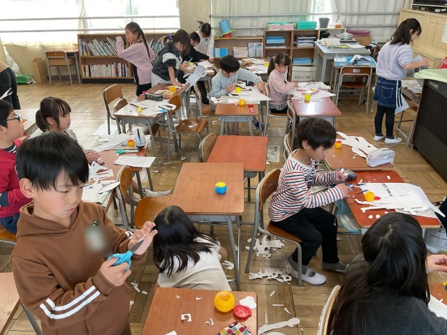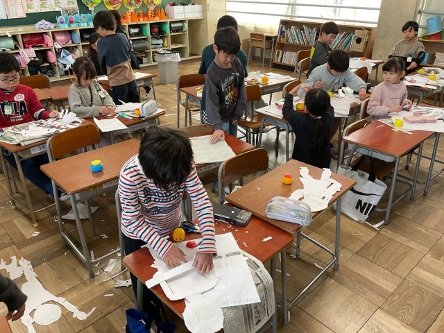 3/9(月)2年生 いよいよ紙版画作成 公開日 2026/03/09 更新日 2026/03/09 2年生 試作を終えて、いよいよ本格的に作成が始まりました。躍動感のあるポーズがたくさん作成されています。今アツい野球のポーズの子もいますね。満塁ホームランを打ちそうなしっかりとした構え。たいへん上手にできています。早く終わった子は、給食に向けて率先して片付けをしてくれていました。 +4 いいね(0)