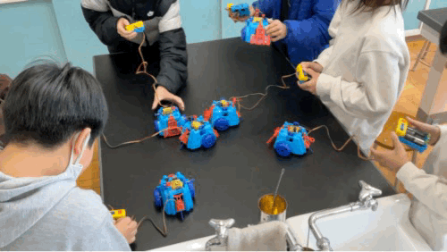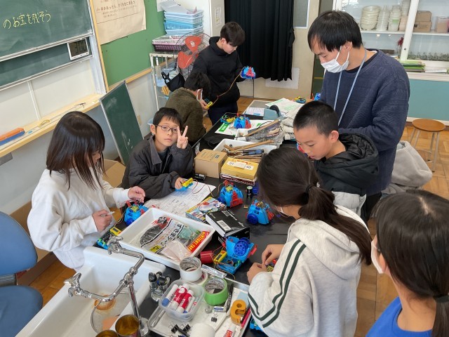 3/12(木)5年生 フットサルロボット始動! 公開日 2026/03/12 更新日 2026/03/12 5年生 電磁石の授業で使ったキットを組み立ててフットサルロボットを完成させていました。組み立てが得意な子が苦手な子に教えてくれていました。タイヤと地面との接地の関係か操縦が難しくて、なかなかフットサルをするところまではいきません。しかし、子ども達にとっては動くだけでも楽しそうです。しっかり実験をしたご褒美ですね。 +2 いいね(1)
