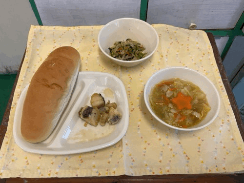 今日は新献立「ホキのレモンづけ」でした。爽やかなレモンの味でさっぱりといただけました。