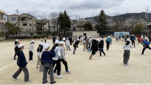学年レクリエーションでドッジビーをしていました。