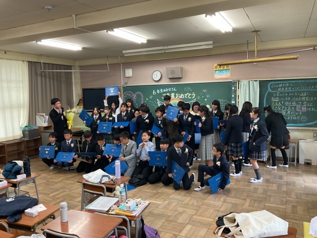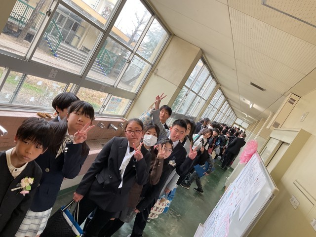 卒業生のみなさん、卒業おめでとうございます。中学校でもがんばってください!