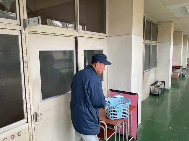 卒業したはずの6年生の教室から物音が聞こえます。校務員さんが教室の修繕を進めてくれていました。