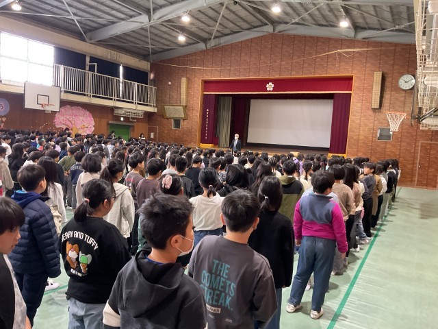修了式を行いました。移動の放送の後、体育館に行くと1〜5年生の児童が整列して静かに待っている姿に大変成長を感じました。式が始まってからもしっかりと前を向いて校長先生の話や生活委員会が作ってくれた動画を見て、話を聞くことができていました。皆さんが一つ上の学年になって元気な姿で始業式に会えることを楽しみしています。