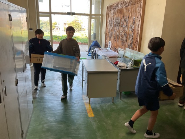 春休み中にも関わらず、新6年生の児童の皆さんが、6日の入学式に向けた準備を手伝ってくれました。校舎の周りや廊下、靴箱やトイレ、新1年生教室に体育館と新入生を迎えるためにありとあらゆる所を分担して、綺麗に会場準備を行なってくれました。一生懸命に働いてくれた6年生の皆さん、ありがとうございました。