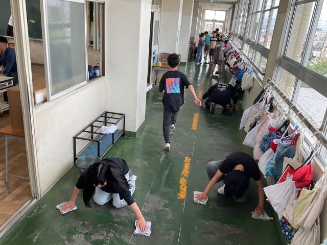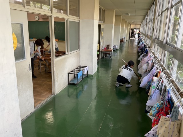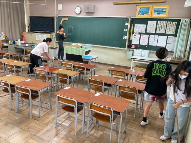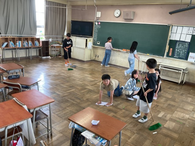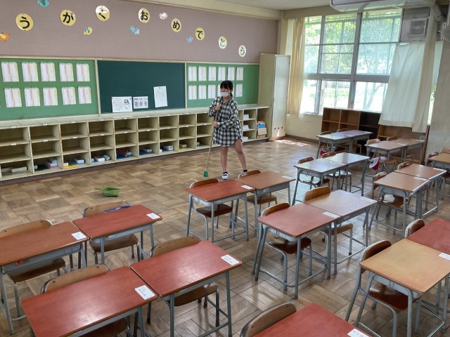 掃除時間には先生達が率先して見本を示している姿が見られました。また、1年生はしばらく給食後に下校するため、1年生の教室は6年生の児童が助っ人に行ってくれています。1年生と一緒に掃除をするのが楽しみですね!