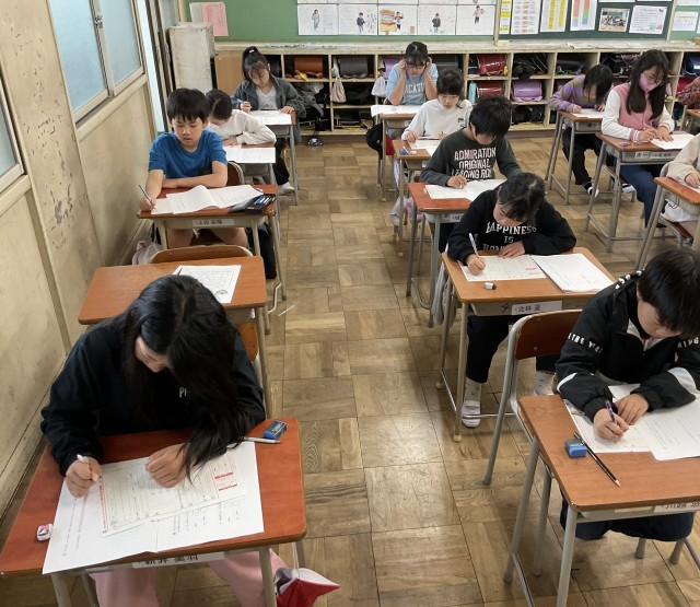 5年生も朝から、大阪府すくすくテストに取り組みました。1〜3時間目に、国語・算数・理科・わくわく問題・アンケートとそれぞれの時間は20分程度と短いですがたくさんのテストに取り組みました!全力で臨む姿が素晴らしいですね!