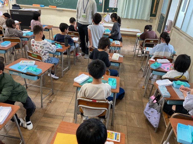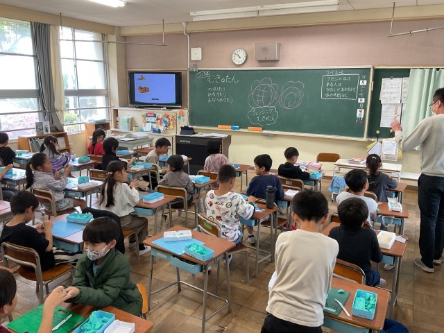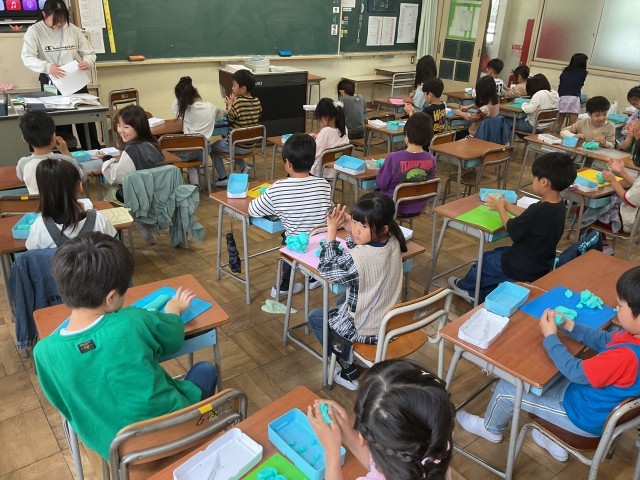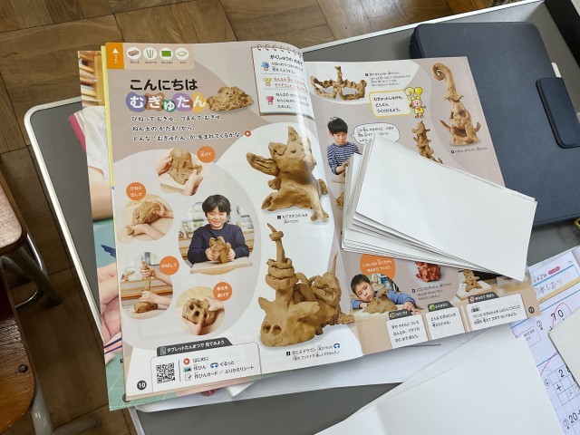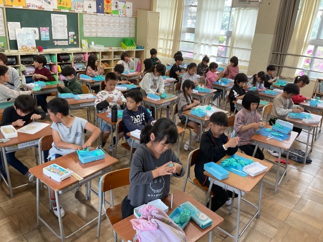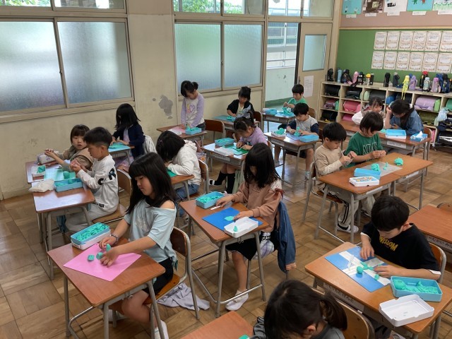 4/27(月)2年生 図工「こんにちわ むぎゅたん」
