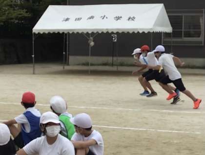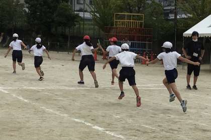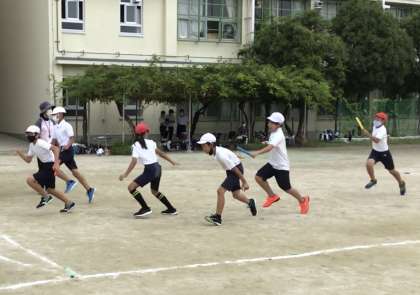 運動会での全員リレーの練習です。しばらくバトン練習をしていなかったにも関わらず、とてもスムーズにバトンが相手に届いています。