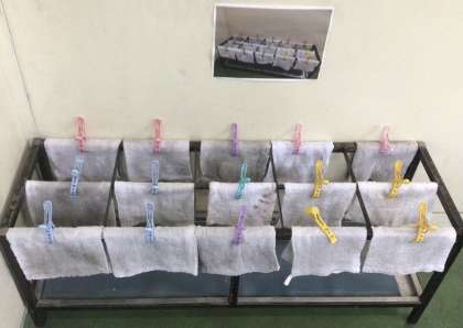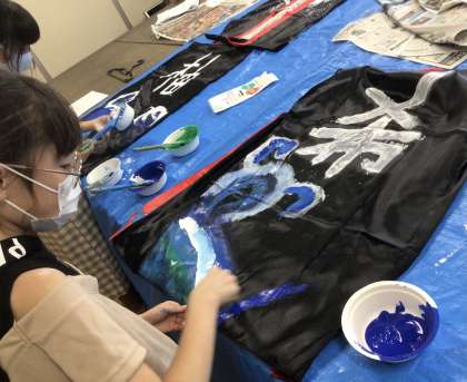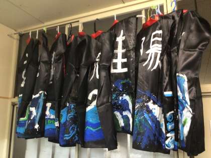 5年生の廊下を訪れると出来上がったハッピが吊るされていました。制作中の子ども達もいます。着々と準備が進んでいます。ところでいつ訪れてもぞうきんがお手本のようにかけられています!