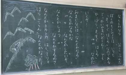 2学期に入って先生達が新しい「詩」を掲示してくれています。わずかな時間、子ども達は立ち止まり「詩」の世界を感じ取っているようです。