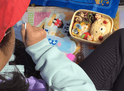 工事見学の後は枚方河川敷でお昼ご飯を食べました。おいしいそうなお弁当ばかりです。雨上がりと寒さで少し心配でしたがこども達は元気いっぱい走り回っていました!
