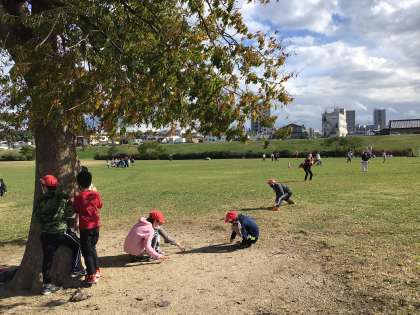 お弁当を食べた後は思いっきり体を動かして遊んでいます!5年生では「だるまさんが転んだ」がなぜか流行っています!