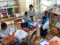 暑い日が続いていますが、子ども達が毎日、水やりをしているおかげでアジサイも元気に育っています。大切に育てているアジサイをしっかりと観察しています。
