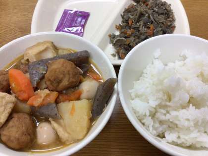 関東煮は、うずら卵の味がお出しによく染み込みとても美味しかったです。ゆかりのふりかけも、ご飯がすすみました。ごぼうも、適度に柔らかくおいしかったです。