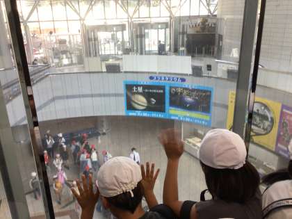 実行委員さんの説明を聞いて、地下1階から一気に4階へ上がり、降りて行く形で見学スタートです。