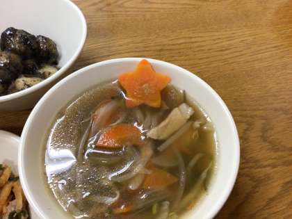 栄養満点の野菜スープの中に、星型の『ラッキーにんじん』を発見です!