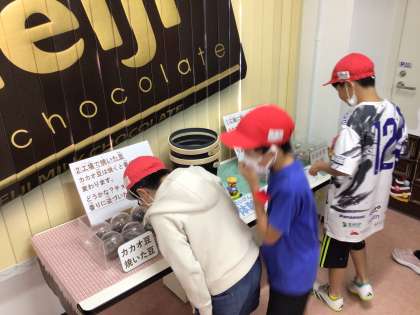 11月8日(水)3年生 校外学習(4) 公開日 2023/11/08 更新日 2023/11/08 3年生 工場内は撮影禁止でした。 見学したのは、きのこの山を作っている様子でした。 なんと、チョコレートの部分は、「ビター」と「ミルク」の2層でできています。 1つの型で360個も作ることができるそうです。 また、展示室でお話を聞き、カカオ豆やカカオマスの匂いを体験することができました。 いいね(0)