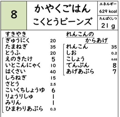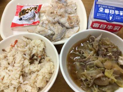 れんこんのからあげは、もちもち感もありとてもおいしかったです。かやくごはんは、今の季節にピッタリでした。