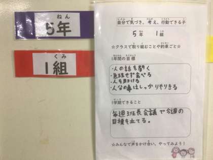 5年生の各クラスの目標に少しでも届きますように!