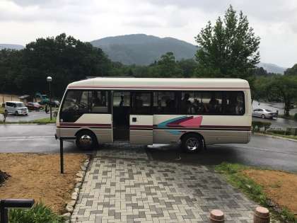 先に、さらさで汗を流した1、2組はバスで宿まで送迎していただきました。