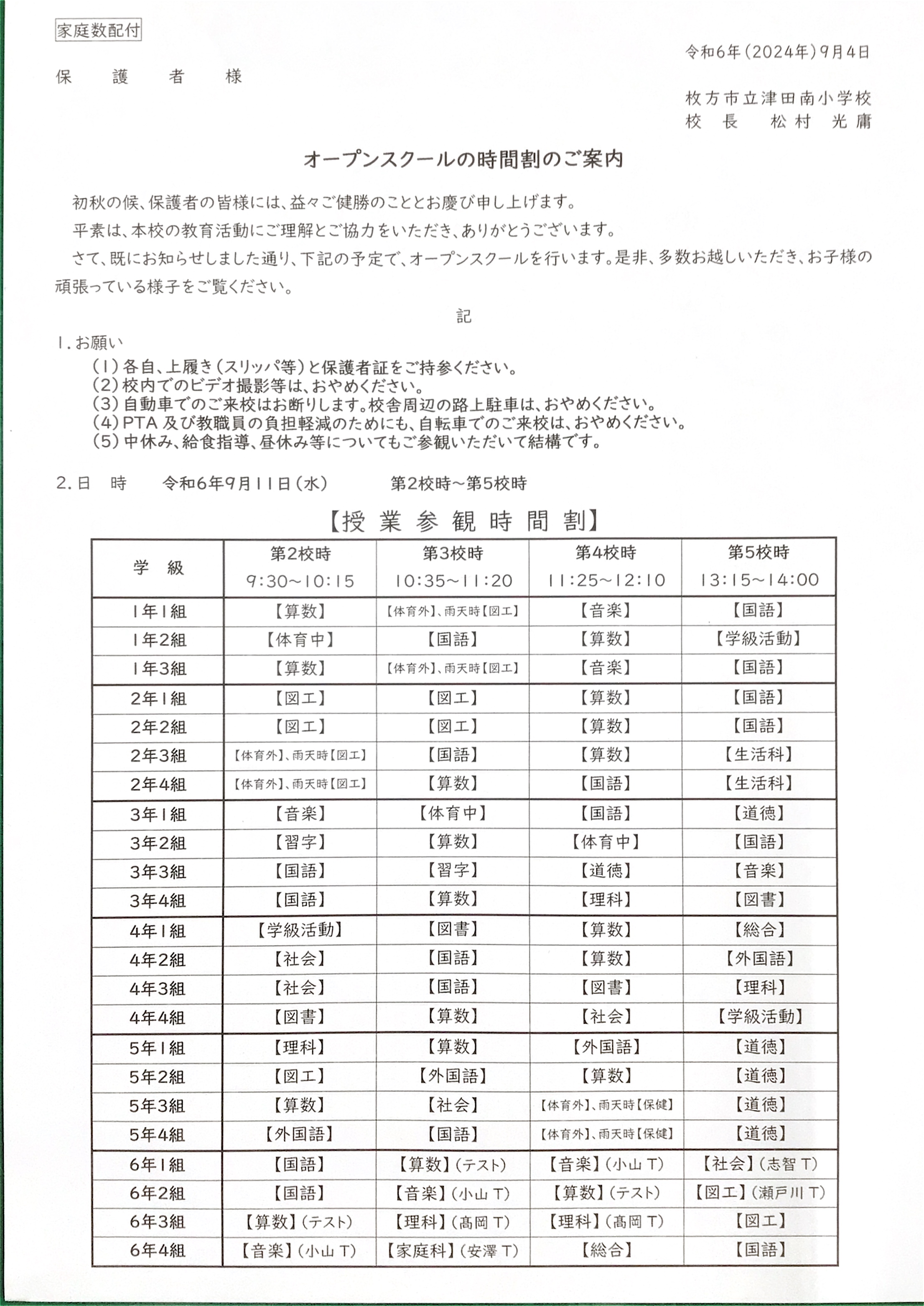 🫱オープンスクール時間割🫲