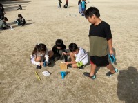 九九に取り組んでる2年生の教室の後ろにはいろいろな小道具が置いています。お花のよ...