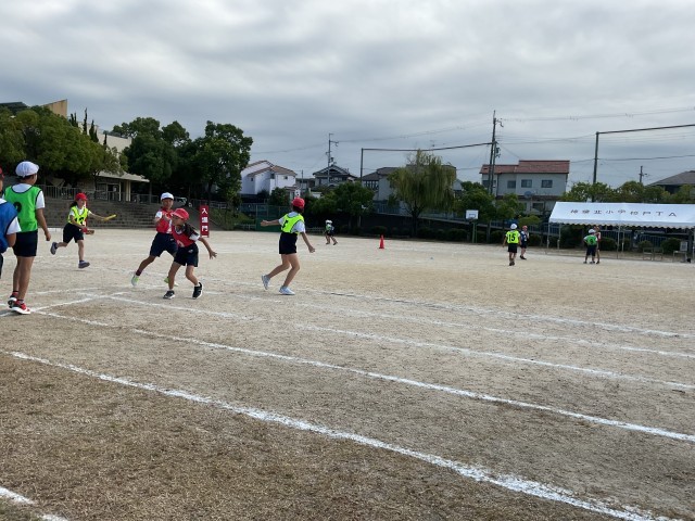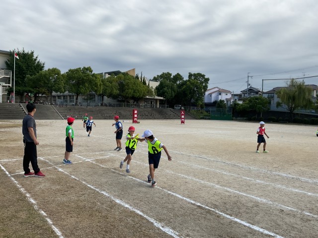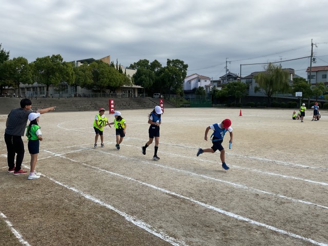 4年生は運動会の「走競技」リレーの練習を行なっています。
