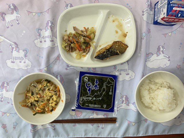 10月15日 本日の給食のメニューは「鯖寿司」給食には生物は出せませんので焼き鯖寿司でした。