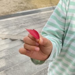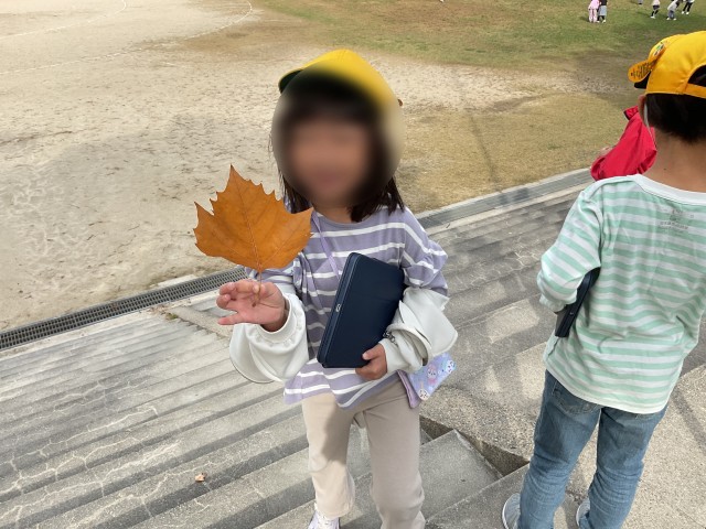 1年生の国語科「はっけんメモ」を書くために、秋の観察に外に出ました。一気に季節が進み、今日はとても肌寒いです。花・虫などの生き物・葉っぱなどの植物を、視覚・触覚・嗅覚・聴覚などをフル活用させて気がついたことが発見メモにかけるように観察していました。