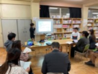 幅跳びの練習をしています。斜め上の紐に届かせるつもりで伸び上がるように地面を蹴って練習していました。また、輪っかの中で踏み切る練習ができるなど、いくつかのコースが用意されていて「紐ありのコース」「箱ありのコース」「輪っかありのコース」「幅跳びのコース」の中から、自分に合ったコースを自分で選んで練習していました。