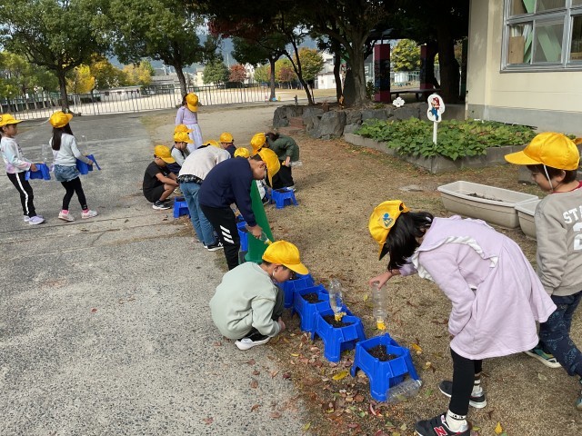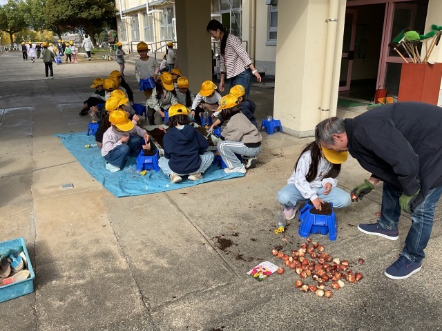 人権擁護委員さんにお越しいただき、「人権の花いっぱいプロジェクト」を行いました。1年生向けのお話しの中で、自分も含め全ての人を大切にすることや、愛をもって人と接することで人権の輪を広げるお話しを聞き、花いっぱいプロジェクトとしてチューリップの球根を植えました。ふかふかの養分たっぷりの腐葉土に優しく球根を入れて、そっと優しく土を被せて「きれいな花が咲きますように」と言いながらお水をあげていました。
