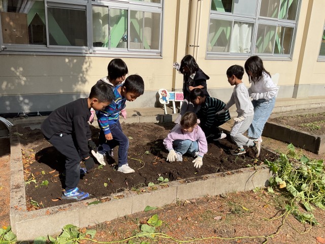 さつまいもの苗を植えたあとの時期に暑さが厳しく、今年は豊作とはいかなかったみたいですが、自分たちで育てたさつまいもを掘り返すのは楽しく芋掘りをしました。