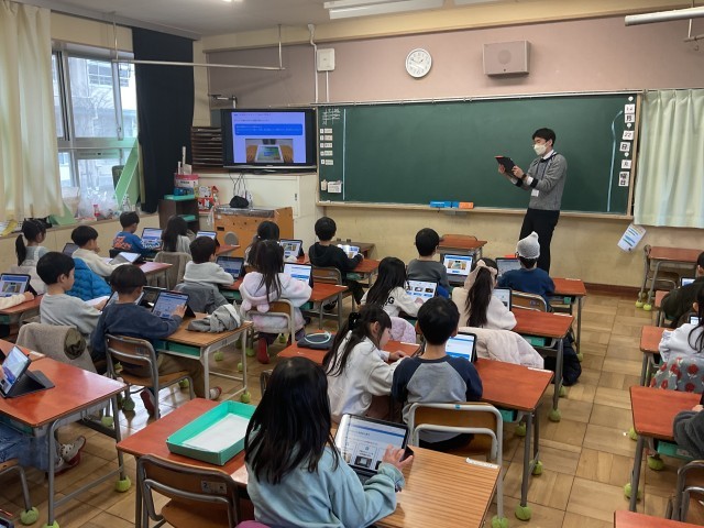 1年生は情報教育です。ICTサポーターの先生にタブレットを使う時のルールなど、1年生にわかりやすく授業をしていただきました。これからの学習に必要なタブレットの適切な使い方をしっかりと学んでほしいと思います。