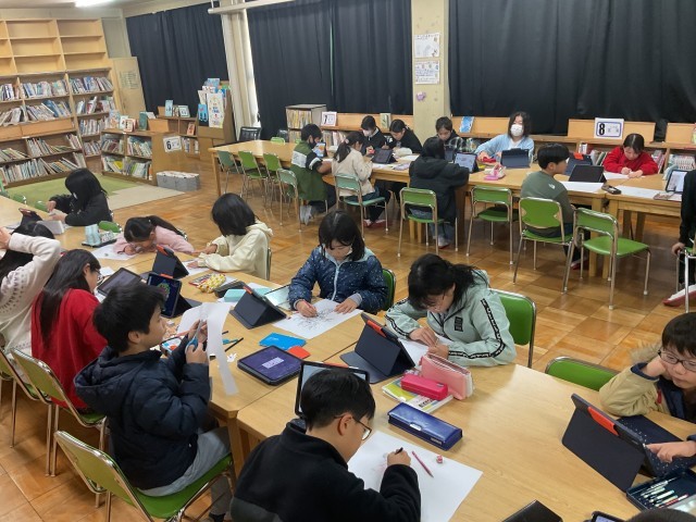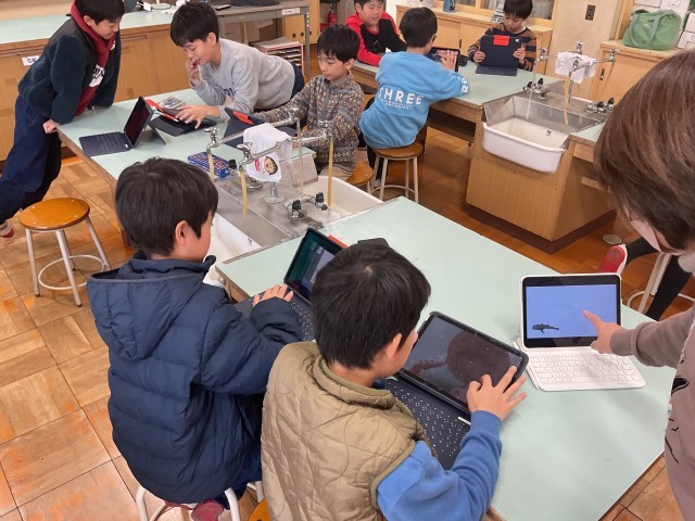 どのクラブも楽しそうに活動していました。外クラブは少し風が冷たかったですが、寒さに負けず元気に走るたくさんの児童の姿がありました。タブレット研究クラブはジンベイザメを筆頭に海の生き物がタブレットの中を自由に泳ぎ回っていました。(プログラミング学習)