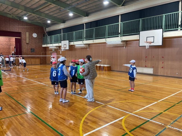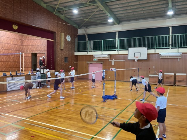 体育館ではバスケットボール、バドミントンで汗をかいている児童がたくさんいました。