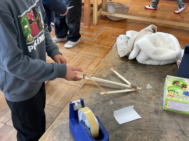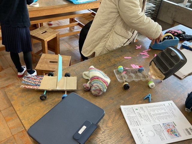 今まで理科の授業で習った知識を活かして遊べる作品作りをしていました。低学年の生活科を卒業し、今年から始まった理科の授業では磁石やゴムの働きや、風や電気の学習までたくさんの実験をしてきました。その知識を使って、自分で動くおもちゃや飛び出す仕組みを考えていました。