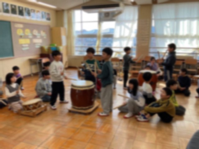 2年生も今度の参観に向けて張り切って和太鼓の練習をしています。リズムを覚えて叩けるようになってきて、とってもノリノリです。参観を楽しみにしてください。