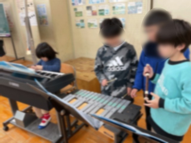 3年生の音楽では、「エーデルワイス」の合奏に挑戦していました。少人数編成にすることで、グループで教え合い、息を合わせて音を重ね合わせていました。3年生で初めて習ったリコーダーもとっても上手になり、澄んだ音色で吹けるようになっていました。