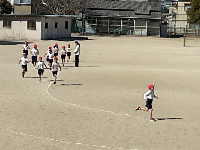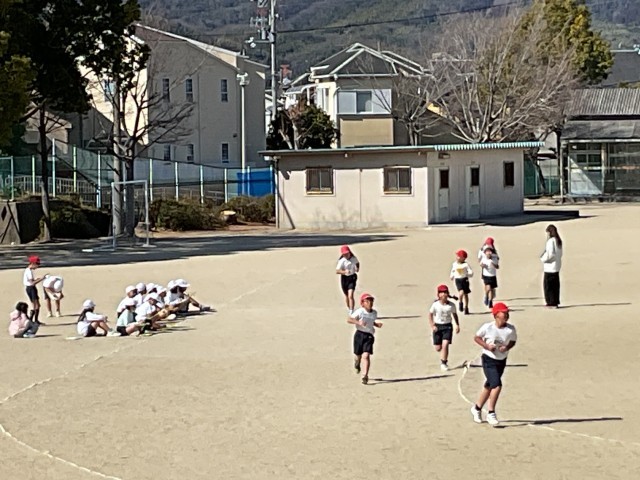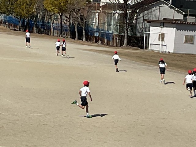 運動場では2年生が持久走をしていました。持久走はしんどいですが、「持久力」という体力は簡単には身につくものではないのが苦しいところです。体育の時間に何度も繰り返し走り、息があがって肺も苦しく身体も疲れますが、低学年のうちからそうやって「持久力」という体力をつけておくことが大切ですね。みんながんばれー!歩きたくなる自分に負けないで!