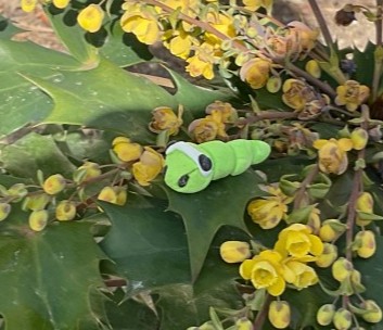 紙粘土に絵の具を混ぜ込んで色をつけ、紙粘土で「学校盛り上げマスコット」を作成していました。出来上がったマスコットを学校の中のふさわしい場所において背景とコラボさせ、写真に収めていました。