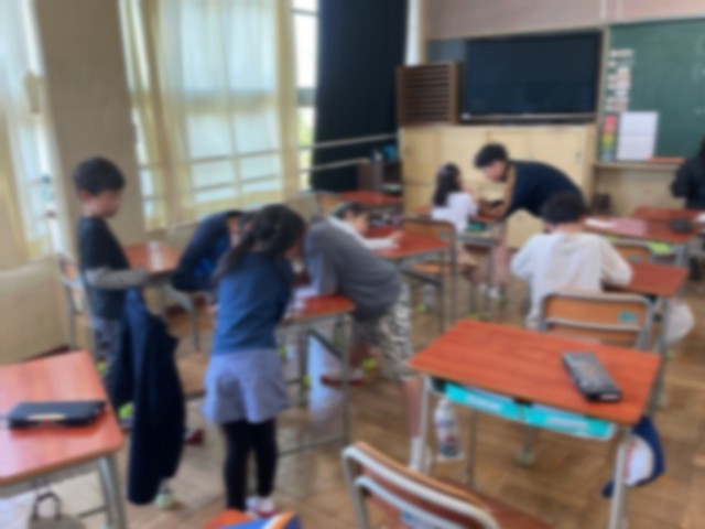 「地区児童会」とは、地域の「地区」の「児童」の会のことです。毎朝一緒に登校してくる地域の児童が協力して安全に登校できるように、児童同士が話し合ったりルールを確認したりするための、本来は地域の保護者と児童が主体的に運営する会です。新しい班長さんのもと、新1年生も入学してきたのでメンバーを確認し、毎日安全に登校できるように集合場所や出発時間を確認しました。