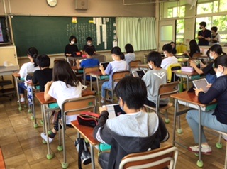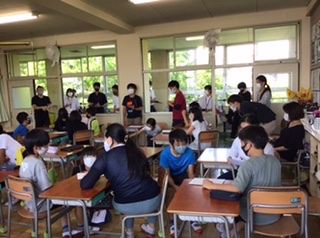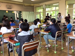 今年度1回目の校内研究授業を行いました。本校の研究テーマは「目的に向かって、みんなが話してよかったと思える話し合いをする姿をめざして」です。話し合いの議題からクラスのみんなで考え決めています。今日の議題は「みんなで大きな絵を描こう」です。提案理由は「クラスのみんなで大きな絵を楽しく描けばクラスの一体感ができるから」ということです。いろいろな意見が出ましたが、子どもたちは合意形成をして意見をまとめていました。