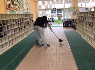 校務員の方が子どもたちのために掃除をしてくれています.普段は花を育てたり、芝生を刈ってくれたり、溝掃除をしてくれたり、傷んでいるところを修理してくれたりしています.感謝です.