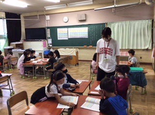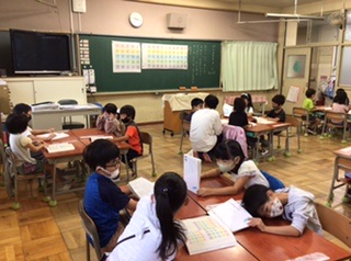 カタカナをグループで聞き合い、読み合いをしていました。とてもスラスラ言えていました。