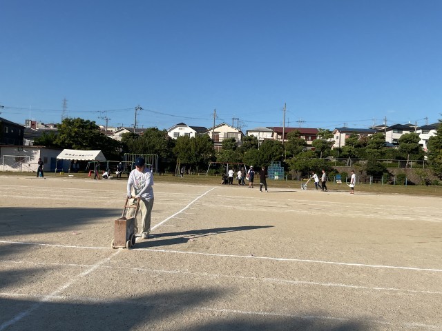 日曜日の運動会に向けて、児童が下校した後で職員総出で準備を行いました。