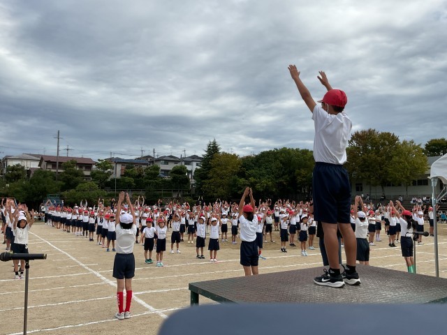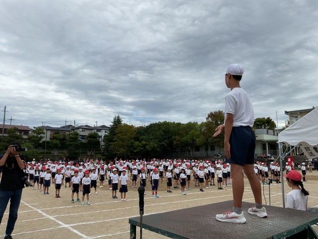 朝から気持ちの良い天気です。5日後の日曜日、運動会に向けて全体練習を行いました。児童会児童の進行やプラカード係や体操係などの各係の児童も、それぞれが自分の役割を確認しながら練習を行いました。